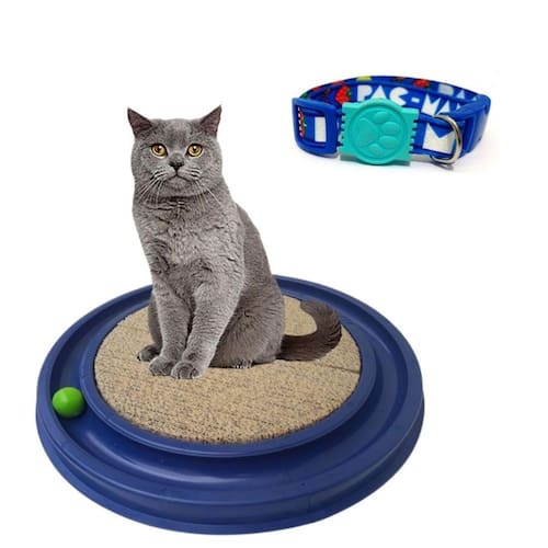- o kit contêm: - 1 arranhador catmiau com bolinha no meio; - 1 coleira de seda;