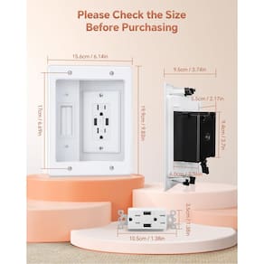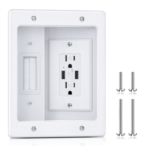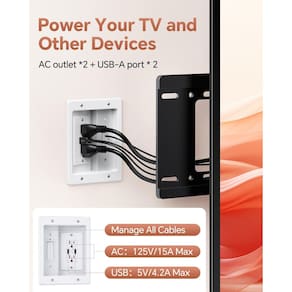 ZEXMTE Kit de gerenciamento de cabos de parede com tomadas CA e portas USB, kit de alimentação de TV de parede, cabos ocultos para TV montada na parede, tomada embutida, cabo de placa de parede para cabos de alimentação de TV e cabos de baixa tensão, branco - ?Kit de gerenciamento de cabos de parede para alimentação de TV?O kit de alimentação de TV de parede ZEXMTE inclui 2 plugues CA padrão, 2 portas USB A e passagem de baixa tensão. Ligue sua TV ou outros dispositivos enquanto esconde cabos bagunçados atrás da parede. Deixa a parede da sua TV limpa e arrumada. - ?Fácil de instalar?Vem com modelo de corte e manual de instruções para sua fácil instalação. E inserir com clipes de montagem para instalação rápida e fácil de nossa tomada embutida sem suportes adicionais - ?Design que economiza espaço?A placa de parede com cabo de saída embutida é perfeita para conseguir TVs de tela plana, equipamentos A/V, obras de arte ou consoles de entretenimento para serem posicionados mais perto das paredes. Perfeito para gerenciar seus cabos de alimentação de TV e cabos de áudio e vídeo - ?Combina com a cor da sua casa?A cor branca combina com a cor da sua casa e é ideal para sua sala de conferências, escritório e qualquer lugar residencial e comercial - ?Especificação?O kit de alimentação de TV de parede ZEXMTE inclui um receptáculo duplex de 15 amperes/125 volts e saída de porta USB A: saída máxima de porta dupla 5V/4,2A e saída máxima de porta única: 5V/2,1A. Inclui 1 placa de parede com escova, 1 soquete, 1 caixa elétrica, 1 modelo manual e de corte. P.S. Sem cabos elétricos.