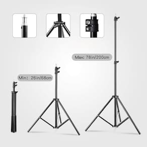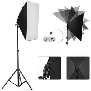 A softbox do estúdio pode girar 210 °, fornecendo a luz adequada de diferentes ângulos, tornando suas fotos ou vídeos mais perfeitos. O tripé pode estender-se de 68cm a 2m de altura com um design de coluna de 3 seções, você pode instalar e desmontar rapidamente.