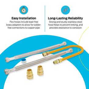 - Fácil instalação: as mangueiras flexíveis incluem adaptadores de latão sem grafite para permitir conexões sem solda ao tubo de cobre