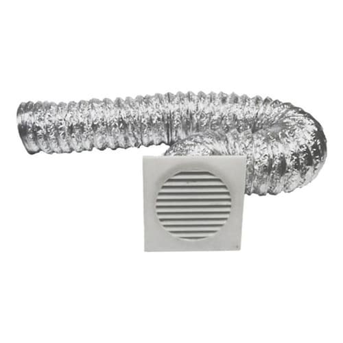 O kit de saída para instalação do renovador de ar equation 100, é composto por tubo sem isolamento acoplado extensível até dois metros e grade de ventilação com presilhas de fixação