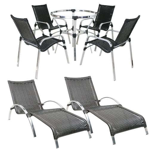 Kit De Jogo de 4 Cadeiras e 2 Espreguiçadeiras Sem Mesa Trama - Preto