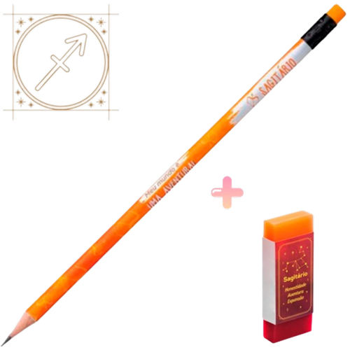 Kit de lápis preto grafite e Borracha Tris Signo Sagitário