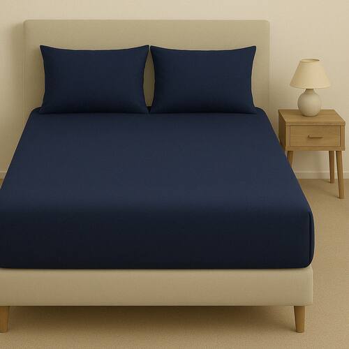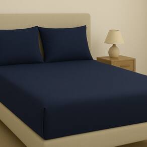 Kit De Lençol Malha Sofee e Par De Fronha 100% Algodão Queen 158x198cm Azul Escuro -