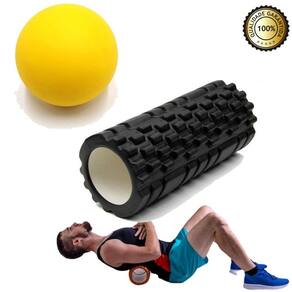 Kit de liberação miofacial rolo + bola lacrose cor: preto kit de liberação miofacial