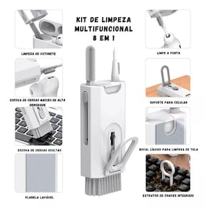 Kit De Limpeza Multifuncional para Eletronicos 8x1 - Teclado, Fones, Celular, Tablet e Notebook