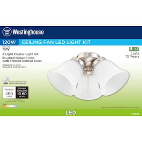 Westinghouse 7784900 Kit de três luzes LED para ventilador de teto, acabamento em níquel escovado com vidro canelado fosco, branco