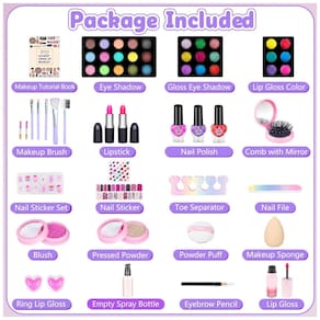 Kit de maquiagem sem bagunça e de tamanho grande: O tamanho da caixa de maquiagem é 19 x 16 x 16 centímetros. Quando totalmente aberto, o comprimento é de 36 centímetros! Incluindo um total de 62 unidades de cosméticos e acessórios. Coroa e joias são as preferidas de toda princesa! Desde fantasias, festas e atividades, ou apenas a hora da princesa, há muitos utensílios de maquiagem nesta caixa de maquiagem com alça.