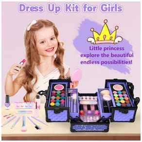 Kit de maquiagem moderna para crianças: Conjunto de maquiagem roxa de beleza com quase tudo o que você precisa para maquiagem e vestir-se. Com 5 compartimentos de arrumação, as meninas podem seguir o seu coração para criar as suas próprias caixas de maquilhagem, e também cultivar a sua capacidade estética, cuidando dos seus brinquedos e da consciência de arrumação. Assim que as meninas tiverem esse kit de maquiagem, elas se tornarão as princesas mais lindas!