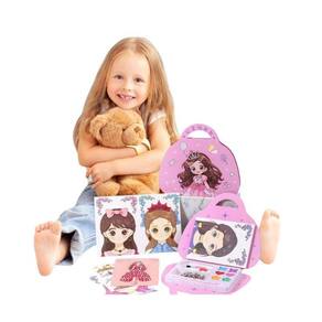 Ele acompanha uma paleta com 6 cores vibrantes, pincéis e aplicadores delicados, pedrinhas decorativas e um livrinho com rostinho para treinar as maquiagens, tudo pensado para oferecer uma experiência mágica e interativa.
