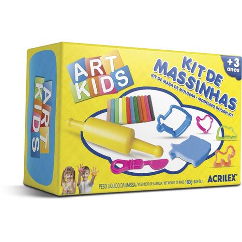 Kit de Massinha Art kids - Acrilex - As Crianças vão se divertir com este Kit. Diverte e desenvolve a criatividade. Acompanha 01 Conj de Massinha de modela soft r 180 gramas c/12 cores, 01 Rolinho, 01 Faquinha e 5 moldes, Cooposição Água, Carboidrato de Cereais, Cloreto de sódio, Conservante, Aroma, Aditivos e Pigmentos, Resina Termoplástica. Não tóxica . Não recomendável para menores de 03 anos. Segurança do Inmetro CE-BRI/SGS NM 300/2002 Segurança do Brinquedo SGS OCP 0040. Ean: 7891153077895