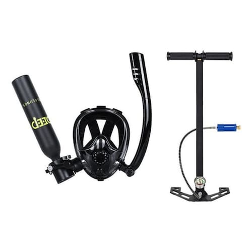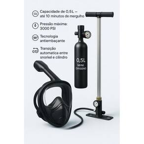 Mergulhe com Liberdade: Kit Completo de Mergulho com Máscara + Cilindro + Bomba de Ar Descubra uma nova maneira de explorar o mundo subaquático com este kit completo de mergulho, ideal para quem busca aventura com segurança e praticidade. Esse combo foi desenvolvido para unir o melhor do snorkeling e do mergulho recreativo, oferecendo liberdade de movimento e respiração confortável até mesmo a 10 metros de profundidade. O Que Está Incluso: Máscara facial de mergulho com snorkel seco integrado Cilindro de oxigênio portátil de 0,5L alumínio de aviação 6061 Bomba de ar manual de alta pressão Acessórios extras: chave de manutenção + peças reserva Principais Benefícios: Respire de forma natural e segura sob a água Visão panorâmica de 180 com lente antiembaçante Pressão de até 3000 PSI / 200 BAR com manômetro embutido Sistema de conexão rápida 360º entre cilindro e máscara Recarregável em minutos com bomba manual incluída Ideal Para: Snorkeling com cilindro de apoio Mergulho leve em até 10 metros Prática de esportes aquáticos Explorações costeiras e em piscinas profundas Situações de treino e segurança Importante: O cilindro oferece autonomia de 5 a 10 minutos, variando de acordo com a profundidade e o ritmo respiratório. É indicado para uso recreativo e esportivo, não substituindo cilindros de mergulho com tanque dorsal. Viva experiências únicas com confiança e tecnologia ao seu lado Adquira agora o seu kit completo e transforme cada mergulho em uma nova história Marca: Não Informado Ean: 7901610039561