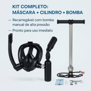 Mergulhe com Liberdade: Kit Completo de Mergulho com Máscara + Cilindro + Bomba de Ar Descubra uma nova maneira de explorar o mundo subaquático com este kit completo de mergulho, ideal para quem busca aventura com segurança e praticidade. Esse combo foi desenvolvido para unir o melhor do snorkeling e do mergulho recreativo, oferecendo liberdade de movimento e respiração confortável até mesmo a 10 metros de profundidade. O Que Está Incluso: Máscara facial de mergulho com snorkel seco integrado Cilindro de oxigênio portátil de 0,5L alumínio de aviação 6061 Bomba de ar manual de alta pressão Acessórios extras: chave de manutenção + peças reserva Principais Benefícios: Respire de forma natural e segura sob a água Visão panorâmica de 180 com lente antiembaçante Pressão de até 3000 PSI / 200 BAR com manômetro embutido Sistema de conexão rápida 360º entre cilindro e máscara Recarregável em minutos com bomba manual incluída Ideal Para: Snorkeling com cilindro de apoio Mergulho leve em até 10 metros Prática de esportes aquáticos Explorações costeiras e em piscinas profundas Situações de treino e segurança Importante: O cilindro oferece autonomia de 5 a 10 minutos, variando de acordo com a profundidade e o ritmo respiratório. É indicado para uso recreativo e esportivo, não substituindo cilindros de mergulho com tanque dorsal. Viva experiências únicas com confiança e tecnologia ao seu lado Adquira agora o seu kit completo e transforme cada mergulho em uma nova história Marca: Não Informado