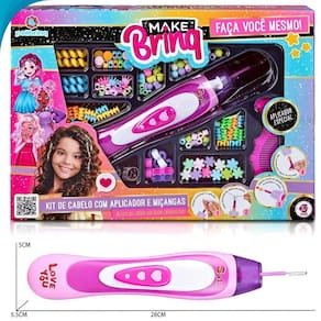 Deixe a criatividade das crianças brilhar com o kit miçangas para cabelo Perfeito para meninas que amam inventar penteados e criar looks cheios de cor e estilo. Com o aplicador especial, é fácil colocar as miçangas nos cabelos e montar tranças, coques e rabos de cavalo super divertidos. Além de estiloso, o brinquedo estimula a imaginação, coordenação motora e interação entre amigos e familiares.
