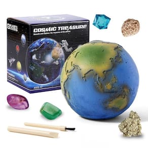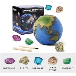 Kit de mineração do planeta - Brinquedos educativos científicos - Ciência infantil Brinquedos do sistema solar - Explorando joias e escavando brinquedos arqueológicos - Presentes educacionais para meninos e meninas Características: Exploração de mineração de planeta Nosso kit de mineração de planeta está equo com um grande torrão planetário, que contém 5 brinquedos gemas diferentes, e permite que o uso de 1 cinzel e 1 pincel. Use esta ferramenta para cavar blocos de sujeira e remover as gemas. E há um manual de pedras preciosas, que contém informações sobre cada pedra preciosa e uma tabela de referência de imagem para combinar a pedra preciosa com a imagem. É muito útil para o aprendizado das crianças. Presente divertido e educacional Este projeto de ciência planetária geralmente é divertido e fascinante. Esta é uma maneira divertida e prática para as crianças aprenderem paleontologia. Você não sabe a localização exata das joias. De repente, desenterrar as gemas deixará seu filho animado e feliz. Essa é uma boa maneira de cultivar e melhorar sua paciência, concentração e habilidades práticas. Como jogar com o traje do planeta 1. Coloque o torrão do planeta na água e mergulhe-o. 2. Use ferramentas de escavação para desenterrar os torrões dos planetas. Use um pincel para limpar a poeira na pedra. 4. Estude o conhecimento planetário e o conhecimento geológico. 5. Colete oito emblemas planetários para que as crianças saibam mais sobre planetas. Tamanho do conjunto planetário O brinquedo de mineração planetária é adequado para crianças com mais de 5 anos de idade, tamanho da caixa do planeta: 5,2 x 3,9 x 3,9 polegadas Lista do pacote: 1 x brinquedo de mineração planetária