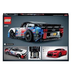 - Crianças de 9 anos ou mais e fãs de automobilismo podem construir sua própria versão do carro de corrida Chevrolet Camaro ZL1 da NASCAR com este kit de modelo de brinquedo LEGO Technic