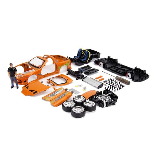 Jada Toys Fast & Furious Brian & Toyota Supra, kit de modelo fundido sob pressão Build n' Collect em escala 1:24 com boneco fundido de 2,75", laranja