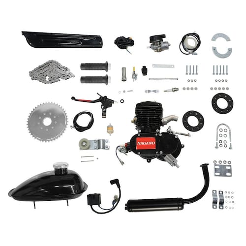 Kit de motor a gasolina de 02 tempos monocilíndrico 100CC para motorizar bicicletas e conseguir ter mais agilidade e rapidez no transporte para a praia escola trabalho para seu lazer e entre outros Este motor tem um mecanismo de funcionamento muito parecido com as mobiletes antigas É leve e ágil Alto desempenho e performance com uma ótima durabilidade Acompanha manual de instruções com imagens e detalhamento para auxiliar na instalação do motor na bicicletaAtenção O equipamento deve ser montado por especialista Sempre deve se atentar as leis de trânsito local Sempre utilize capacete e equipamentos de segurança Cuidado ao escolher óleo de 2 tempos baratos e consequentemente com qualidade inferior no mercado existem produtos baratos que prejudica e provoca a descamação do motor por causa da acidez Capacidade do Tanque de Combustível 02 litrosConsumo de Combustível 2 litros 100KmContém todas as ferramentas para montagemKit de tanque completoRolamentosKit de maneteConj de parafusos porcasCoroa e correnteCabos de embreagem e aceleradorEscapamento padrãoProteção da correnteConj CarburadorIgnição CDI e corte de IgniçãoTensionador da correnteSuporte de fixação2 tempos um cilindro filtro de ar50x40mmPotência 26 KW 6000 RPMIgnição CDIMistura 161 500KmVela de Ignição LD Z8CVelocidade Máxima 45KmhNão acompanha a Bicicleta