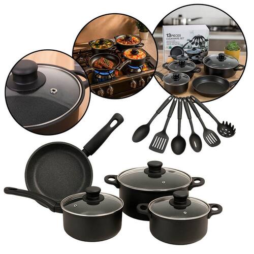 Descrição: Este conjunto de utensílios de cozinha com 13 peças foi desenvolvido para oferecer praticidade, segurança e eficiência no preparo das refeições do dia a dia. Com revestimento interno antiaderente, as panelas permitem cozinhar com menos óleo e facilitam a limpeza. As alças Comfort-Grip proporcionam uma pegada segura e confortável, permanecendo frias mesmo durante o uso no fogão. As tampas de vidro temperado permitem acompanhar o cozimento dos alimentos sem precisar removê-las, otimizando tempo e energia. Ideal para quem busca funcionalidade e durabilidade na cozinha. Informações Técnicas: