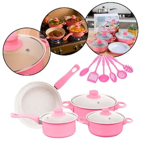 1x Frigideira de 22 cm 1x Panela de 18 cm 1x Panela de 22 cm 1x Pote de leite de 16 cm 6x Espátulas variadas 3x Tampas de vidro temperado Marca: Não Informado