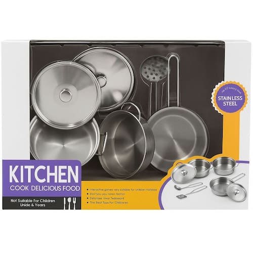 Kit de Panelinhas de Brinquedo em Aço Inoxidável – Conjunto Infantil de Cozinha
