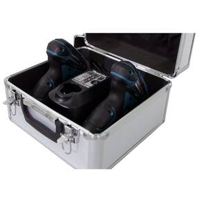 ITENS QUE ACOMPANHAM: 2 baterias 12V 1.3 Ah, carregador bivolt e maleta de alumínio.