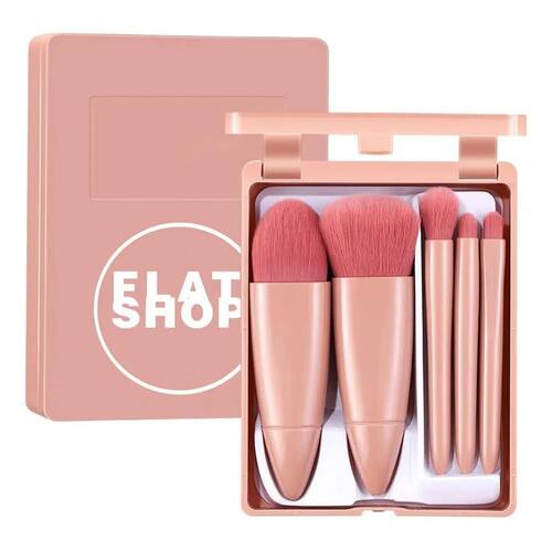 Kit De Pincéis De Maquiagem Flatshop Rosa Pálido 5 Peças Com