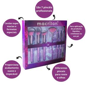 Kit Violet Macrilan ED005 feito com 7 pincéis profissionais para aplicação de maquiagem, tanto com produtos líquidos ou cremosos, como produtos em pó. Com cerdas super macias e formatos especiais para um acabamento suave e impecável.