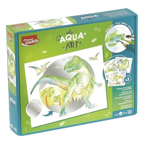 Crie obras de arte deslumbrantes com o conjunto de arte em aquarela metalizada aquaart. O papel foi pré-impresso com desenhos com tema de dinossauro para colorir, e os detalhes metálicos e brilhantes adicionam um toque de cor brilhante os lápis de aquarela triangulares da vibrant colorpeps são fáceis de colorir e misturar com o pincel de mistura de água incluído e, como não há tinta, a coloração é sem bagunça e super fácil de limpar o kit completo contém tudo o que você precisa para criar suas próprias belas obras de arte: 3 desenhos metalizados para cor, 10 lápis de cor triangular colorpeps e um pincel de mistura de água. A maped creativ oferece uma coleção de kits de atividades inovadores, ultradivertidos e estimulantes para crianças de todas as idades todos os kits são projetados para serem feitos com suas próprias mãos com o mínimo de assistência adulta para produzir criações exclusivas para brincar e exibir. Descubra a ampla variedade agora atenção: imagem meramente ilustrativa. Pode ocorrer mudanças no tom da cor para o produto real ou mudanças na embalagem sem aviso prévio por parte do fornecedor/fabricante. Ean: 3154149070589