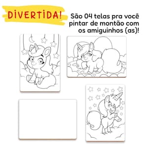 O Brinquedo Pinturinha Unicórnios é a escolha perfeita para pequenos artistas a partir de 4 anos Ele transforma a hora da brincadeira em um momento cheio de imaginação, cor e diversão. Acompanha um cavalete de plástico, tintas coloridas e 4 telas de madeira com 24 cm cada - sendo 3 com desenhos de unicórnios super fofas para pintar e 1 tela em branco para a criança criar o seu próprio unicórnio