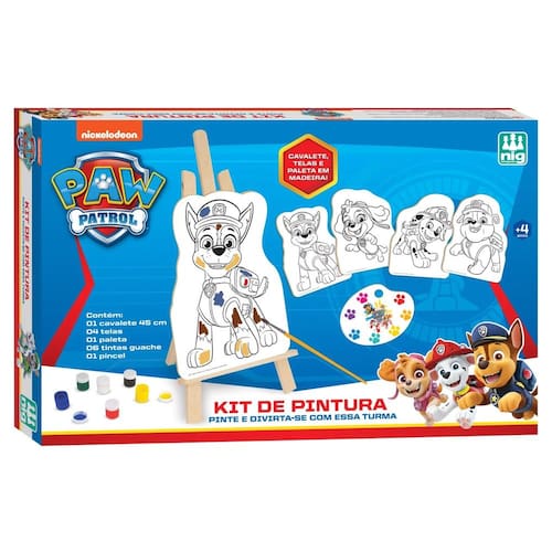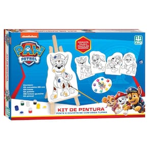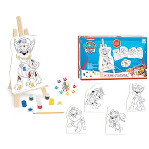 Rubble, Skye, Chase e Marshall estão nas 04 telas desse super kit de pintura para as crianças misturarem as cores e treinarem a coordenação motora.