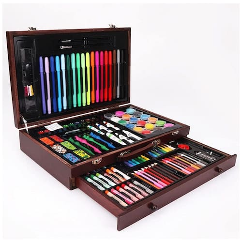 Conjunto de arte o kit de pintura e desenho de 123 peças inclui marcadores, tintas acrílicas e aquarelas, giz de cera, lápis de cor, pastéis de óleo, bolos aquarela, pincéis e assim por diante, que podem atender às suas diversas necessidades. Não tóxico e feito de materiais de proteção ambiental de qualidade alimentar, não tóxicos e insípidos, inofensivos para a saúde humana, adequados para pessoas de todas as idades. Alta qualidade e design exclusivo caixa de madeira de luxo com gaveta removível, conveniente para zenar materiais de arte e mantê los em ordem. Com uma alça durável, o conjunto é fácil de transportar. Ampla aplicação Este conjunto de pintura multifuncional contém basicamente todos os pigmentos e ferramentas de pintura, muito adequados para pintura, esboço, aquarela, graffiti, etc Marca: Não Informado