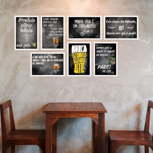 Kit de Placas Decorativas Cerveja Para compor uma decoração muito e com um toque divertido, o uso das placas decorativas é uma excelente opção. Em alta no design, elas podem ser adaptadas em diversos estilos e, inclusive, usadas em qualquer ambiente. Escolha os modelos que combinam com sua decoração e faça diversas composições. Características Técnicas: Tamanho: 20cm de largura X 30cm de altura Confeccionada em MDF - 3mm de espessura Arte com alta definição em impressão fosca Fita dupla face para aplicação Observações: Sem precisar furar a parede, as Placas Decorativas já vão com fita dupla face, que podem ser aplicadas em qualquer parede lisa, a fixação é resistente e segura; Indicamos a limpeza com água e detergente neutro, é inviável o uso de produtos químicos;