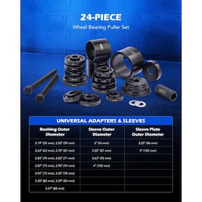 - COMPATIBILIDADE UNIVERSAL: Nosso versátil kit de prensas de rolamentos de roda oferece várias mangas e buchas nos tamanhos mais comuns para funcionar com praticamente qualquer automóvel ou caminhão leve com tração dianteira, seja estrangeiro ou doméstico