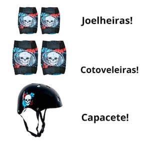 Kit de Proteção - Estampado - Preto - 5 Peças - DM Toys: Proteção ideal para esportes Kit ideal para a proteção das crianças durante a prática de esportes contendo 1 capacete, 1 par de cotoveleiras e 1 par de joelheiras. Ideal para evitar ferimentos e situações indesejadas. Segurança e conforto para que você possa levar suas crianças para se divertir com toda a tranquilidade e sem preocupações, elas estarão seguras contra ferimentos e arranhões. Da uma olhadinha nesses diferenciais: - Com desenho radical - Super resistente com selo Inmetro - Perfeito para a proteção dos seus filhos Informações: • Produto: Kit capacete com acessórios • Marca: DM Toys • Coleção: DM Radical • Tipo: Kit de proteção • Conteúdo: 01 Capacete, 01 par de joelheiras e 01 par de cotoveleiras • Recomendação: para crianças a partir de 06 anos de idade Especificações: • Referência: DMR6158 • Código de Barras: 7899205961581 • Embalagem (C x A x L): 19,5 x 40,5 x 14 cm • Embalagem (Peso): 0.130 kg • Registro: CE-BRI/OCP0019 - N032/20 BR-032/20 NBR NM 300/2002 • Composição / Material: Plástico e isopor • Certificado: Órgãos Autorizados - OCP´S (Organismos de Certificação de Produtos) BENEFÍCIOS DE BRINCAR: - Eleva a autoestima - Exercita a memória - Estimula o raciocínio - Exercita o imaginário - Desenvolve a criatividade - Desenvolve percepção visual - Desperta a atenção e curiosidade - Desenvolvimento neuropsicológico - Estimula habilidades motoras básicas - Incentiva a comunicação e linguagem - Desenvolve aspectos emocionais e afetivo - Estimula o reconhecimento de formas e cores Aviso: - As imagens são meramente ilustrativas - Os tamanhos e medidas são aproximados - As cores e estampas dos produtos podem ter variações - As informações são de responsabilidade do fabricante ou fornecedor