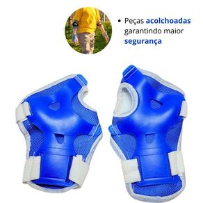 Kit de proteção infantil 6 peças ajustáveis 7899658323226 Cor: azul Se liga nessa oferta exclusiva que preparamos para vocês. O kit de proteção infantil é essencial para garantir a segurança das crianças durante atividades como andar de bicicleta, skate, patinete e patins. ele inclui joelheiras, cotoveleiras e protetores de pulso, que ajudam a proteger as áreas mais vulneráveis em caso de queda. o conjunto conta com peças acolchoadas ajustáveis em elástico, garantindo maior conforto para as crianças durante o uso, ele foi projetado para garantir que as crianças possam brincar e praticar esportes com segurança e liberdade. É fácil de vestir e tirar, e ajuda evitar machucados durante as brincadeiras. Não perca mais tempo e garanta já essa super novidade