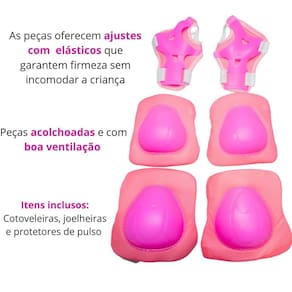Kit de proteção infantil 6 peças ajustáveis 7899658323226 Cor: rosa Se liga nessa exclusiva que preparamos para vocês. O kit de proteção infantil é essencial para garantir a segurança das crianças durante atividades como andar de bicicleta, skate, patinete e patins. ele inclui joelheiras, cotoveleiras e protetores de pulso, que ajudam a proteger as áreas mais vulneráveis em caso de queda. o conjunto conta com peças acolchoadas ajustáveis em elástico, garantindo maior conforto para as crianças durante o uso, ele foi projetado para garantir que as crianças possam brincar e praticar esportes com segurança e liberdade. É fácil de vestir e tirar, e ajuda evitar machucados durante as brincadeiras. Não perca mais tempo e garanta já essa super novidade Por que comprar com a imports - enviamos em até 24 horas; - produto de ótima qualidade; - produto testado e muito bem embalado para chegar em perfeito estado; - foco total no cliente. Informações importantes: - modelo: kit de proteção infantil - material: algodão e poliéster - indicado para crianças maiores de 3 anos - ajuste em elástico - estrutura resistente - excelente acabamento - alta qualidade - kit com 6 peças: cotoveleiras, munhequeiras e protetores de pulso Marca: Não Informado Ean: 7899658323226