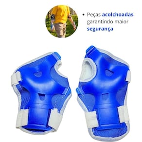 Kit de proteção infantil 6 peças ajustáveis 7899658323226 Cor: azul Se liga nessa exclusiva que preparamos para vocês. O kit de proteção infantil é essencial para garantir a segurança das crianças durante atividades como andar de bicicleta, skate, patinete e patins. ele inclui joelheiras, cotoveleiras e protetores de pulso, que ajudam a proteger as áreas mais vulneráveis em caso de queda. o conjunto conta com peças acolchoadas ajustáveis em elástico, garantindo maior conforto para as crianças durante o uso, ele foi projetado para garantir que as crianças possam brincar e praticar esportes com segurança e liberdade. É fácil de vestir e tirar, e ajuda evitar machucados durante as brincadeiras. Não perca mais tempo e garanta já essa super novidade Por que comprar com a imports - enviamos em até 24 horas; - produto de ótima qualidade; - produto testado e muito bem embalado para chegar em perfeito estado; - foco total no cliente. Informações importantes: - modelo: kit de proteção infantil - material: algodão e poliéster - indicado para crianças maiores de 3 anos - ajuste em elástico - estrutura resistente - excelente acabamento - alta qualidade - kit com 6 peças: cotoveleiras, munhequeiras e protetores de pulso