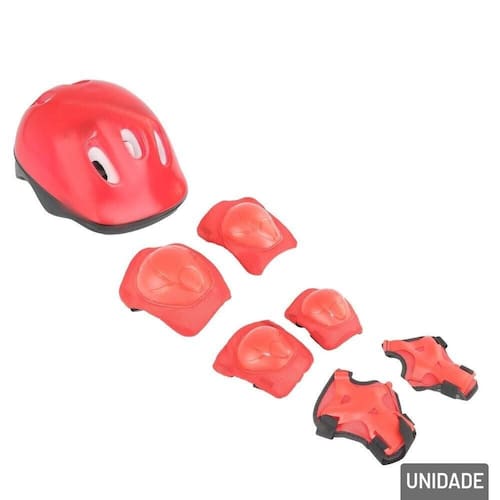 KIT de Proteção Radical Infantil 7 Pçs Ver Mantenha seus pequenos seguros e estilizados durante as atividades radicais com o Kit de Proteção Infantil Radical 7 Peças. Ideal para crianças que amam andar de bicicleta, patinete ou skate, este kit oferece proteção completa e conforto para garantir uma diversão segura.\nO kit inclui 7 peças essenciais para proteção, proporcionando cobertura total e segura para diversas partes do corpo.\nO conjunto é composto por: 1 Capacete, 2 Munhequeiras, 2 Cotoveleiras, 2 Joelheiras.\nFabricado com materiais resistentes e duráveis, cada peça é projetada para suportar impactos e oferecer proteção eficiente sem comprometer o conforto.\nAs peças possuem fechos ajustáveis que permitem um ajuste personalizado para diferentes tamanhos e formas, garantindo um encaixe confortável e seguro.\nEspecificações: Marca : GIFTUTIL\nTipo de material : Plástico, Nylon\nCores ou Estampa : Vermelho\nDimensões do Produto : 35 X 24 X 14 CM\nDimensões da Embalagem : 35 X 24 X 14 CM\nPeso Bruto (Gramas) : 0.190 Marca: Não Informado