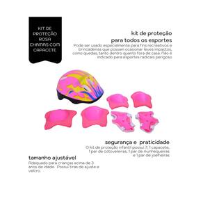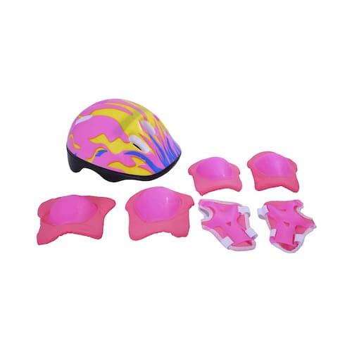 O kit de proteção rosa com chamas com capacete é projetado para fornecer uma proteção completa durante atividades ao ar livre, ajudando a reduzir o risco de lesões graves.