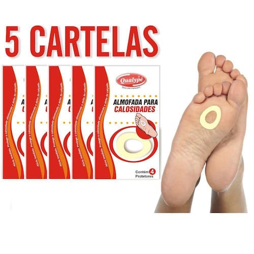kit de 5 cartelas de protetores almofadados para calosidade Cada cartela contém 4 protetores = totalizando 20 protetores por kitA almofada é perfeita para proteger as calosidades e peles endurecidas nas plantas dos pés. Alivia o desconforto da pressão do calçado com a planta dos pés.Formato específico para a função. Aliviam as pressões e atritos provocados pelos calçados.Aliviam as pressões e atritos do calçado em contato com a planta dos pés.Uso único. Aplicar sobre a calosidade e pele grossa da planta dos pés.Em hipótese alguma aplicar sobre a pele irritada ou ferida.Composição: espuma de látex e adesivoCor: branco