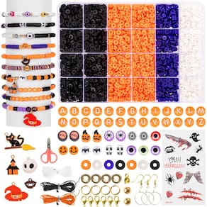 kit de fabricação de pulseiras de amizade - 🎃 Comemore o Halloween: infunda uma atmosfera assustadora em suas criações com nosso kit de fabricação de pulseiras de Halloween. O kit inclui miçangas de argila em quatro cores temáticas de Halloween e miçangas transparentes laranja. Todas as contas de argila vêm em preto, branco, laranja e roxo. Abrace a essência do Halloween com cada pulseira que você criar. - 🕸? Conjunto de acessórios com tudo incluído: projetado para entusiastas de bricolage, este pacote de acessórios inclui miçangas laranja de A a Z para personalização personalizada; olhos malignos, abóboras, aranhas, múmias e pingentes de caveira para despertar o espírito do Halloween; miçangas espaçadoras douradas essenciais, conjuntos de fechos de lagosta, correntes de extensão, cordões elásticos e tesouras. Também incluímos um conjunto de adesivos de tatuagem com tema de Halloween. Coloque-os na testa e nos braços para assustar os outros! - 🦇 Liberte a criatividade: desperte a imaginação e mantenha-se entretido com possibilidades ilimitadas de joias DIY. Sejam pulseiras, colares, brincos ou chaveiros, nosso kit oferece tudo o que é necessário para criar acessórios exclusivos. É a maneira perfeita de se envolver em criatividade prática e sem tela e celebrar o espírito assustador. - 🎁 Escolha significativa de presente: espalhe alegria e criatividade com nosso kit de fabricação de pulseiras, um presente ideal para celebrações de Halloween ou qualquer ocasião especial. Perfeito como lembrancinhas para sua reunião de Halloween, nosso kit permite que todos criem suas próprias joias com tema de Halloween juntos. Imagine a diversão de criar pulseiras e colares personalizados com amigos e familiares e depois trocá-los para aprofundar os laços e melhorar a atmosfera festiva. Crie memórias que durem enquanto compartilha a alegria de criar! - 🌟 Materiais de alta qualidade: nossas miçangas são feitas de plástico e argila premium, garantindo que as pulseiras sejam leves e confortáveis de usar. Ao contrário de outros materiais, nossos grânulos são duráveis e duradouros, proporcionando uma experiência de fabricação superior. Obrigado por escolher nosso kit de fabricação de pulseiras de Halloween!