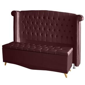 Kit De Quarto Cabeceira De Cama E Calçadeira Baú Toquio Casal Queen 160 Cm Suede Bordo Eli Móveis E Decoração