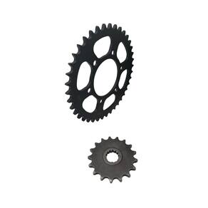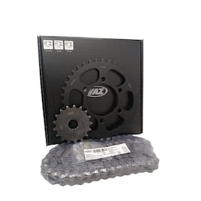 Embalagem: 01 Kit Transmissão Completo. ( Coroa, Pinhão e Corrente )