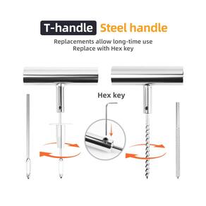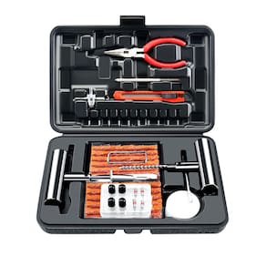 ?Descrição: ?1 x cabo em T resistente feito de metal com agulha para expandir o ponto de reparo ?1 x alça em T resistente feita de metal para puxar nas tiras vulcanizadoras ?1 x pinça para remover os corpos estranhos do pneu ?1 x cadinho de graxa facilita a inserção da alça em T com agulha ? 2 x chave Allen para soltar as inserções das alças em T ?1 X agulha aberta ? 1 X agulha de lâmina ? 1 x faca miniatura ? 40 peças corda de pneu autovulcanização de 10 cm. ? 1 caixa pequena ? 1 caixa de plástico para armazenamento ? 1 haste de ferramenta de válvula de 4 vias ? 4 botões de parafuso de cabeça de plástico ? 4 x núcleo de válvula ? 10 plugues de reparo rápido de pneus. - ?Reparo de pneus 70 em 1?Um total de 70 peças de acessórios de kit de reparo de pneu inclui plugues de reparo de pneus, cordas de reparo, lubrificante, substituição de ferramenta de inserção, ferramenta de inserção de alça, alicate de nariz, faca e assim por diante. Você não precisa de ferramentas extras, temos tudo para você. Só precisa pagar uma vez para obter tudo. - ?Resistente e durável?Nosso kit de reparo de pneus é feito de aço refinado de alta qualidade e liga de zinco menos propenso a ferrugem. Tiras de pneu de alta qualidade feitas de borracha butílica e vulcanização de borracha natural, produto para manter flexível e menos propenso ao envelhecimento. - ?FÁCIL DE USAR?Quase todos os motoristas têm experiência - uma perfuração repentina ao dirigir sem preocupações ao longo da estrada. O kit de plugue de reparo de pneus pode ajudá-lo a voltar à estrada rapidamente. Todas as ferramentas do kit de troca de pneu quando evitadas estão em uma mala prática que você pode manter no carro sem ocupar espaço. - ?Função potente?Com base em anos de experiência na venda de ferramentas de reparo de pneus, desenvolvemos um conjunto de ferramentas de reparo de pneus que é essencial para todas as famílias. Melhora todas as deficiências no uso de ferramentas de reparo de pneus para atender a todos os cenários de uso e carro. Funciona com qualquer pneu sem câmara - Patch de emergência para caminhão, bicicleta, cortador de grama, sedã + muito mais. - ?SUPORTE AO CLIENTE 24/7?A ORCISH é uma empresa integrada da indústria e comércio especializada no campo automotivo, com um processo próximo desde a produção de P&D até as vendas. Nosso objetivo é criar produtos melhores para os proprietários resolverem vários problemas. Portanto, não hesite em entrar em contato conosco se tiver alguma dúvida sobre o produto. Seremos responsáveis por nossos produtos até o fim.