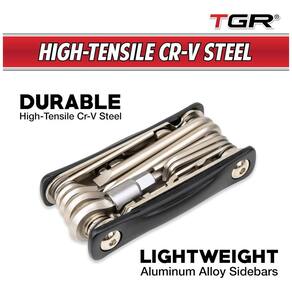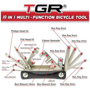 19 Ferramentas de precisão Hexagonal 2L, 2,5L, 3L, 2, 2,4, 3, 4, 5, 6, 8, cabeça Phillips 2, cabeça chata 5, espalhador de pinça, abridor de garrafas, chave de raios 14G, 15G, MAVIC M7, chave de caixa 8mm, 10mm Combinação de barra lateral de aço Cr V de alta resistência e liga de alumínio leve para máxima resistência, portabilidade e anos de uso duradouro. Com 19 ferramentas, cada função cobre a maioria dos reparos e ajustes que você pode precisar fazer em sua bicicleta Marca: Não Informado