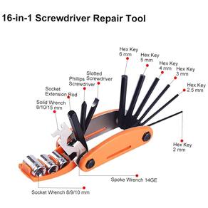 FERRAMENTA 16 EM 1 DE ALTA RESISTÊNCIA As ferramentas 16 em 1 essenciais para bicicletas têm 6 tipos de chave hexagonal interna diferente, 3 tipos de chave de soquete, 3 tipos de chave plana, 2 tipos de chave de fenda, 1 chave de raio e 1 manga haste de extensão BOLSA DE SELIM PORTÁTIL DEDICADA. A bolsa de cauda do assento em forma de cunha aerodinâmica com bolso principal interno e bolso de malha auxiliar, pode encher as ferramentas e pequenos itens como chaves. Sistema de montagem de liberação rápida da bolsa do assento que permite montagem e remoção rápida e fácil sem ferramentas. É compacto e fácil de transportar, e tem uma função à prova dágua. VERSÃO DE PNEUS MELHORADA 3 EM 1. Alavancas de pneus remendos pegajosos Frustração função três em um, nossos pés de cabra tipo peixe são maiores, mais resistentes e não são fáceis de quebrar, a frustração pode ser desmontada e instalada no pé de cabra mais conveniente. Pode acomodar vários remendos de pneus, pode ser desmontado e zenado quando não estiver em uso Marca: Não Informado
