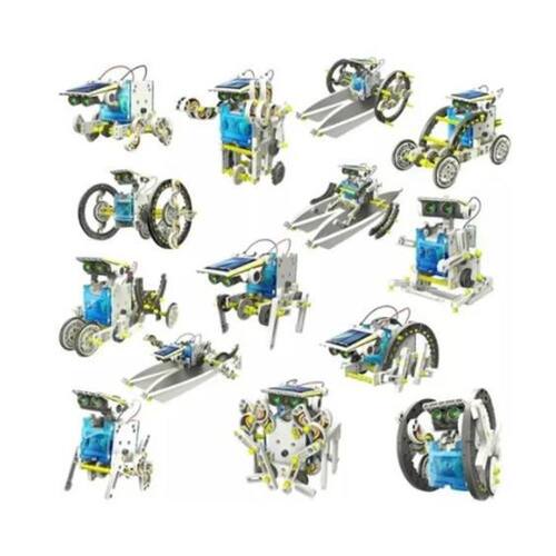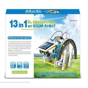 Robo 13 em 1 O kit de robô solar educativo 13 em 1 permite que você construa 13 robôs diferentes com energia solar - um de cada vez - que imitam um cão caminhando, um caranguejo, um surfista de natação, um boxeador e muito mais. Cada robô requer que você siga instruções de montagem específicas para lhe dar um curso intensivo em engenharia enquanto se diverte. Dois níveis de dificuldade permitem que os iniciantes ganhem facilmente confiança construindo robôs mais simples antes de passar para o próximo nível. Nenhum dos robôs precisa de baterias - apenas o sol ou uma fonte de luz forte é suficiente - para operar qualquer um dos 13 modelos de robôs. Um kit educativo simplesmente formidável para crianças, pois desenvolve capacidade cerebral, além de ensinar sobre os benefícios da energia solar. O painel de energia solar torna esses robôs amigáveis ao meio ambiente. Ideal para expressar o interesse de seus filhos pela ciência, extremamente útil para seus filhos no desenvolvimento da criatividade.