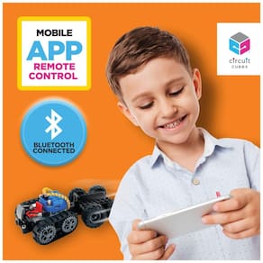 O KIT SPACE ROVERS EXPLORER é um conjunto de 100 peças que inclui engrenagens, pneus, bandas de rodagem e eixos, além de 1 bateria Bluetooth e 3 motores cúbitos. Com instruções detalhadas, é possível construir 3 veículos robóticos exclusivos. O aplicativo Bluetooth Circuit Cubes de CONTROLE REMOTO permite o movimento controlado das construções.