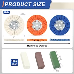 Kit de polimento de vias aéreas de 20,32 cm, 12 camadas, kit de 6 peças Este kit de roda de polimento de vias aéreas e compostos é adequado para rebarbadora angular de 20,32 cm de diâmetro de 5/20.3 cm. O pacote inclui 1 roda branca de polimento das vias aéreas para polimento fino. 1 roda de polimento das vias aéreas laranja para polimento médio. 1 roda de polimento das vias aéreas azul para polimento grosso. 1 composto branco. 1 composto marrom. 1 composto verde. - [Bom design]: esta roda de polimento é projetada para polir por mais tempo e mais frio do que os lustres padrão, projetada para polimento grosso. - [Alta qualidade]: tecido de alta qualidade, o anel central galvanizado é resistente à corrosão e durável. Recomendamos uma rebarbadora de 20 cm que funcione na faixa de 3.000-6000 com um ponto ideal a 3.500 RPM. - Amplamente utilizado: utilizado para polir peças de veículos como rodas, tanques, para-choques, para-lamas, etc. Ou qualquer outro acabamento de metal/parte de alumínio, latão, cobre e aço inoxidável. Recomendado para uso com compostos de polimento. - [Fácil de usar]: Estas rodas de polimento funcionam perfeitamente com compostos de polimento, ligam um moedor, broca ou motor e pressionam o composto contra a roda. o calor e a fricção transferirão o composto para a roda de polimento. - [Dimensão]: Diâmetro da roda de polimento das vias aéreas: 20,3 cm, orifício interno do mandril: 5/20.3 cm, 12 camadas, composto: 100 g.